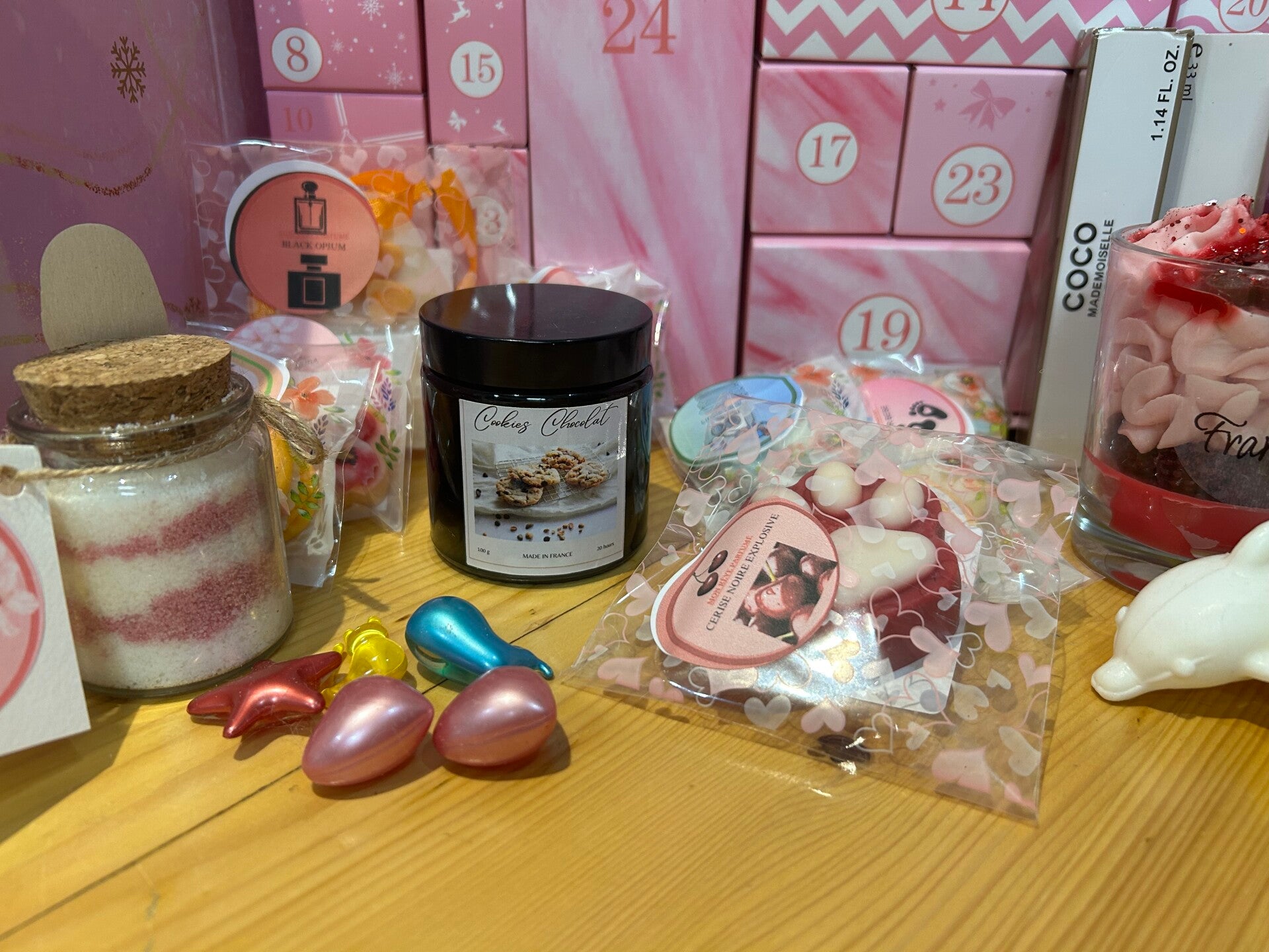 Je vous propose un calendrier de l avent XXL, composé de tellement de produits differents allant de la bougie, aux fondants, aux produits bain et plein d autres MEGA surprises.....